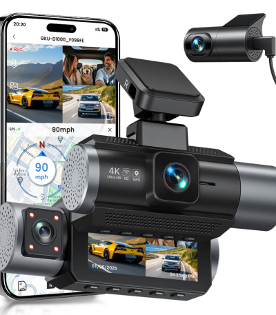 Dashcam GKU D1000 3 channels 4K 30fps+2.5K+1080p 5.8Ghz WiFi