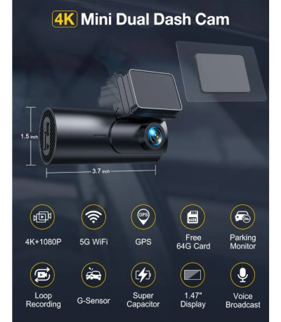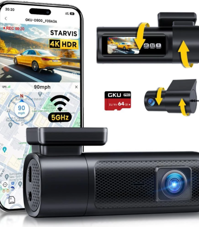 GKU D600 Avant et Arriere 4K/2.5K WiFi 5.8Ghz Dash Cam